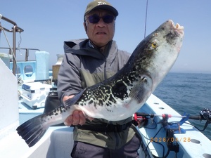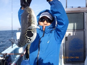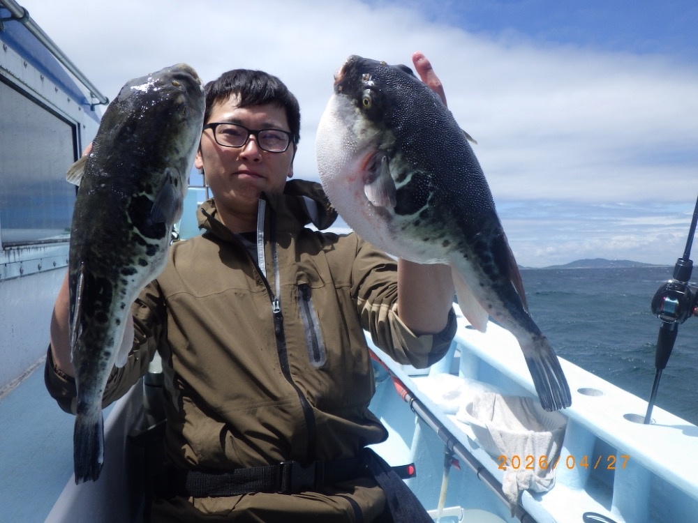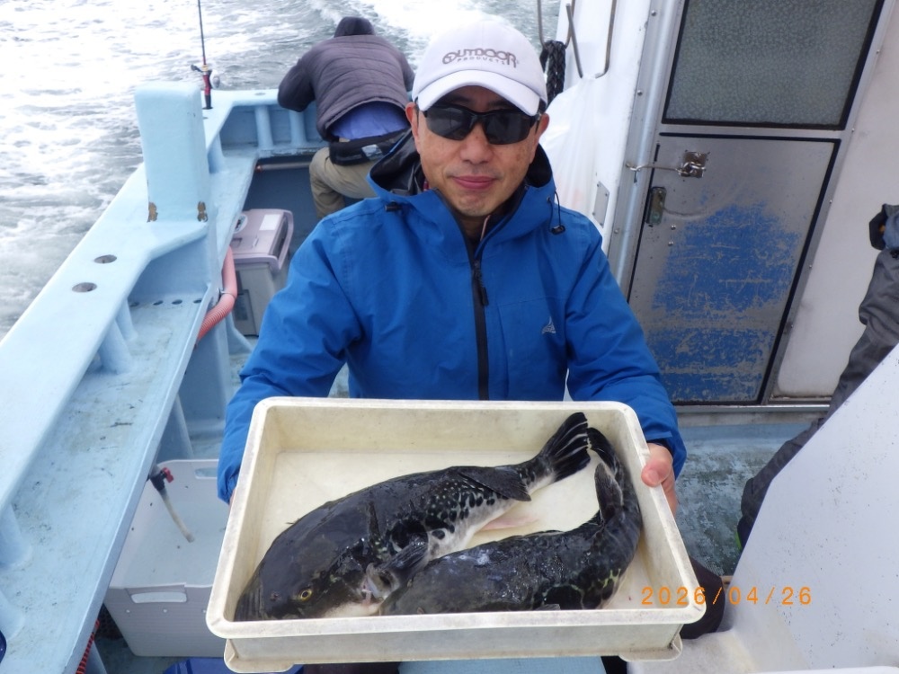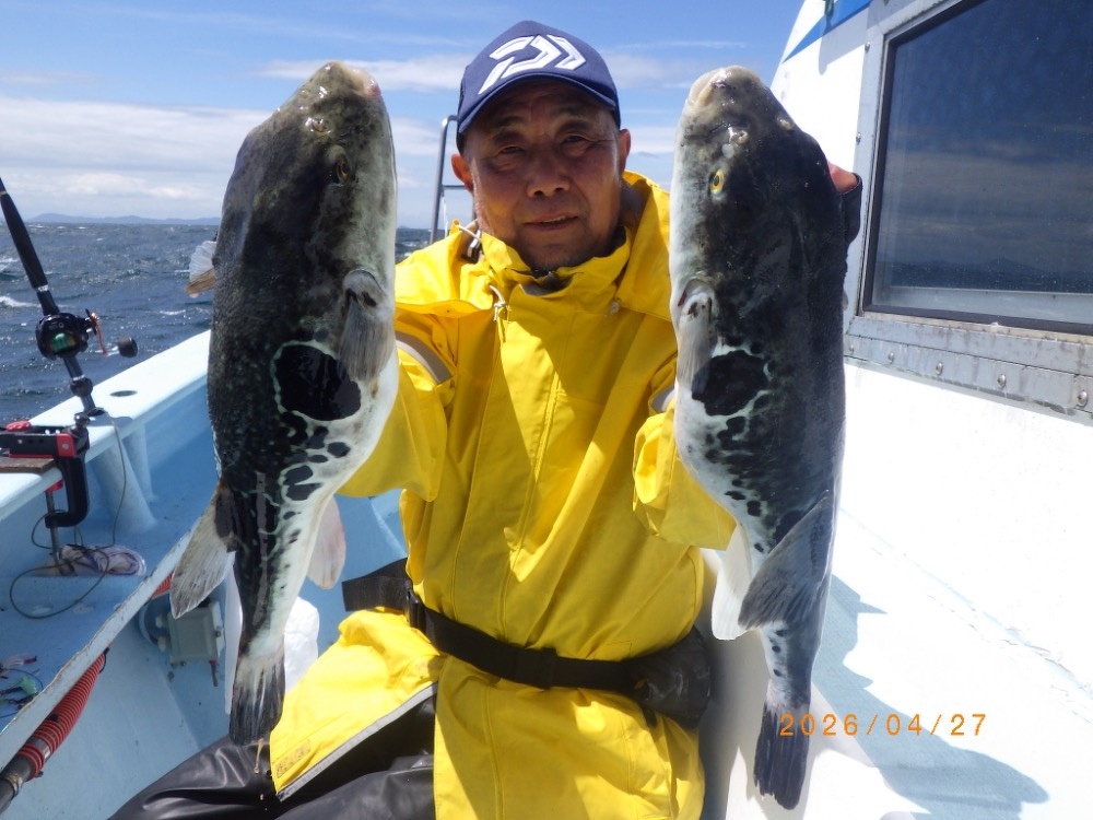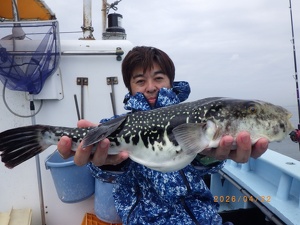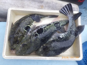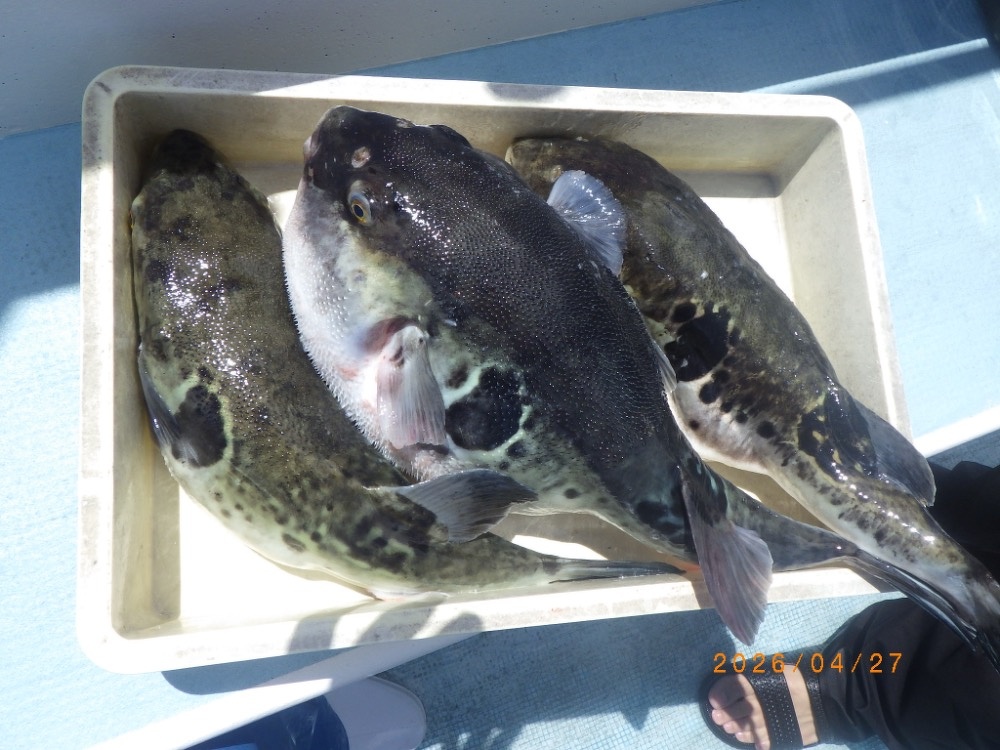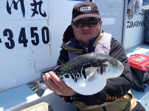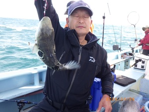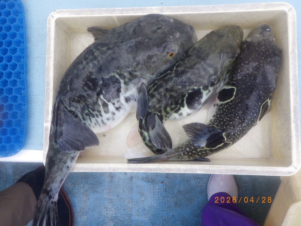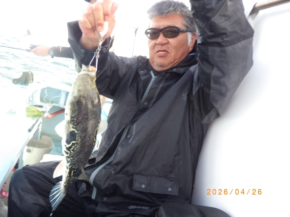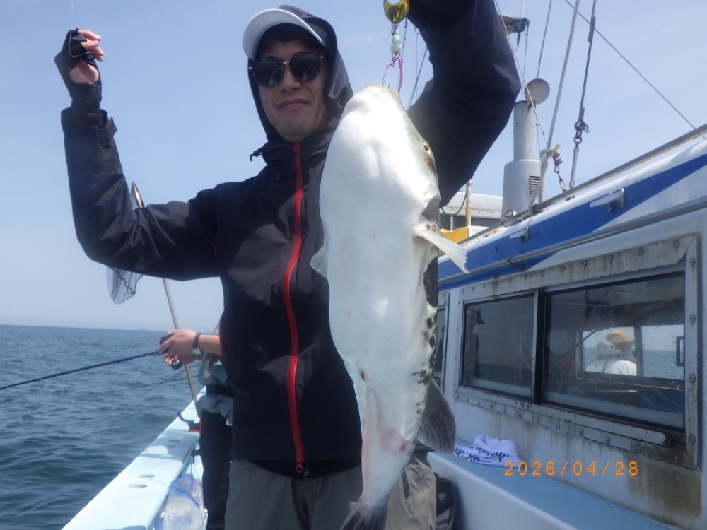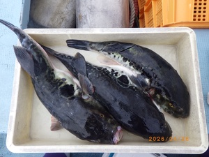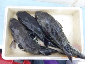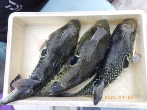 それでも上がってくれば2㎏前後の良型トラフグ!