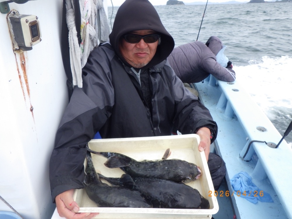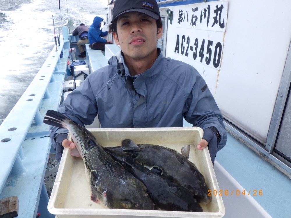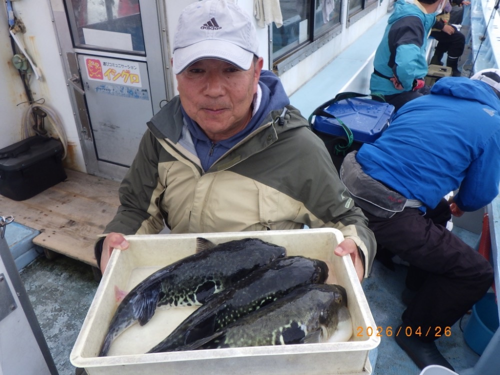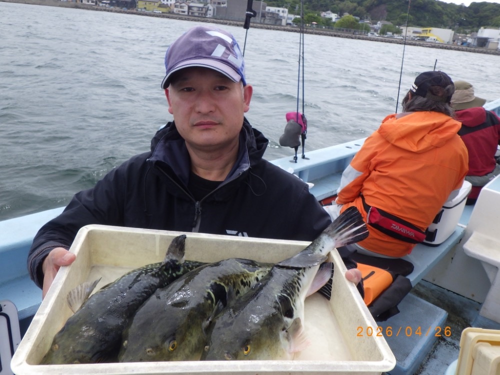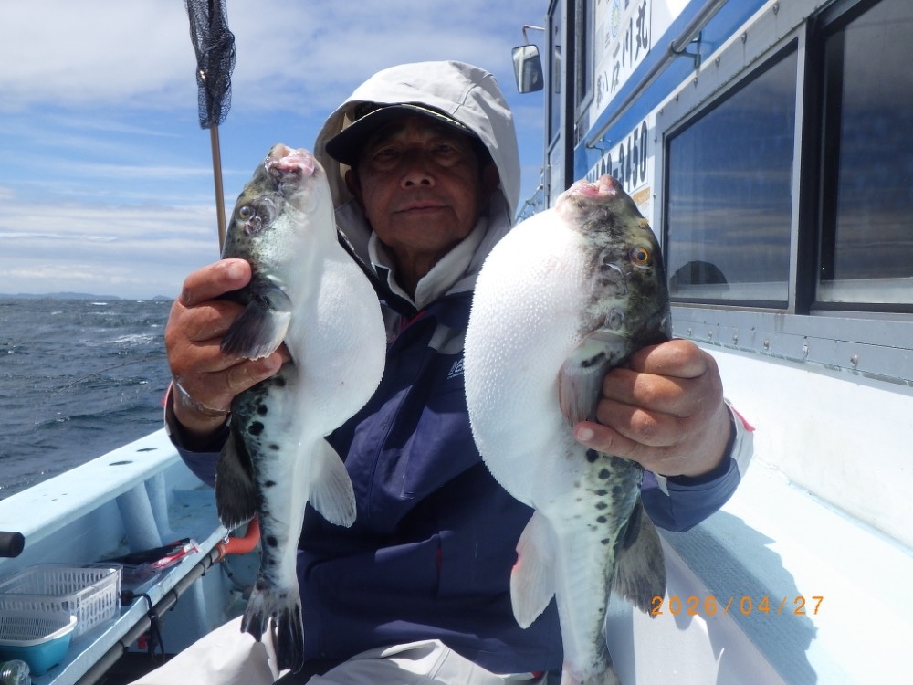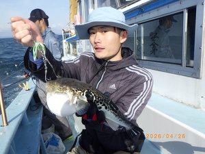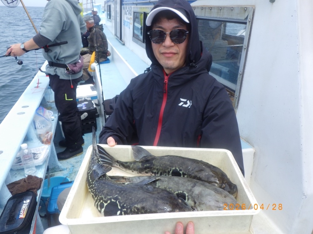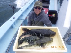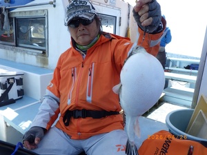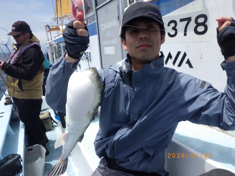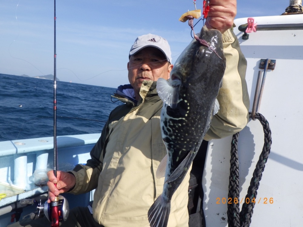 それでも上がってくれば2㎏前後の良型トラフグ!