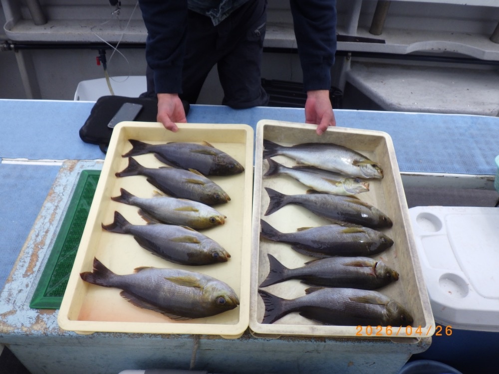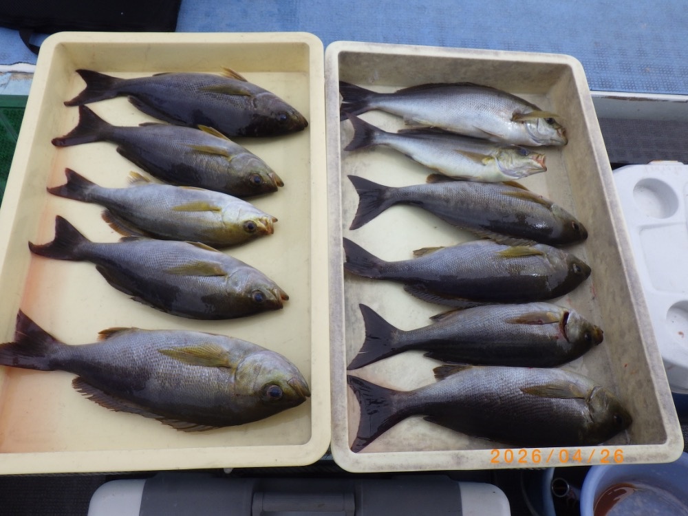 大山沖のイサキ、まだまだ期待できそうですよ。曇りや雨の日は特にチャンスです♪