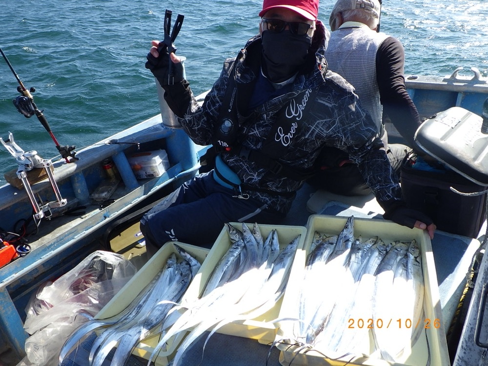 2020年10月26日月 第五・美味秋タチウオ好調キープ! 一覧へ戻る 場所伊良湖沖、水深50〜70M・天秤1本針・オモリ80号 コース タチウオコース 釣りものタチウオ 確実に釣れるタチウオは魅力的ですねぇ~ 今週も爆釣モード全開でしょう☆ ⭕明日・第五・タチウオコース