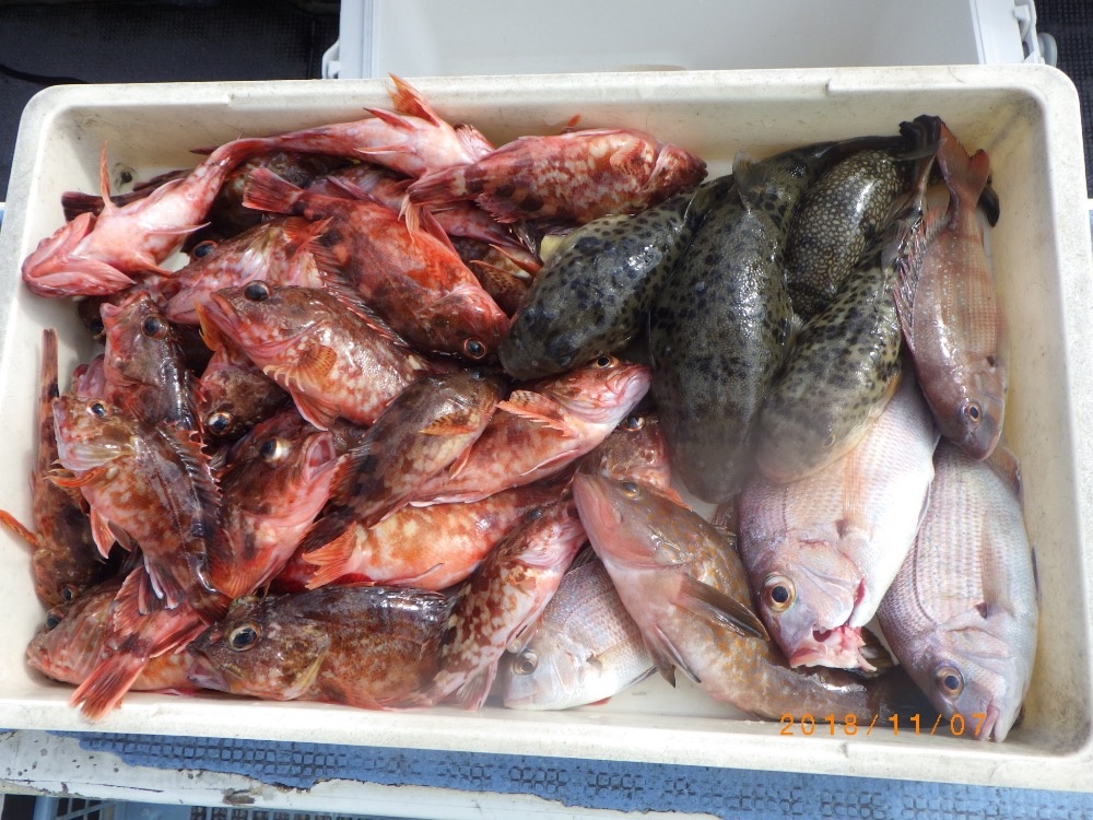 鯛類、根魚、フグ、カワハギ、大物外道まで幅広く釣れました