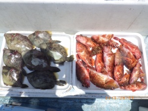 - 釣りものサンバソウ、カンパチ、小鯛、カワハギ、ウマズラ、カサゴ、フグ、マタカ、コチ