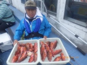 - 場所師崎沖 伊良湖沖 水深10〜20m 胴突き3本バリ、オモリ60号