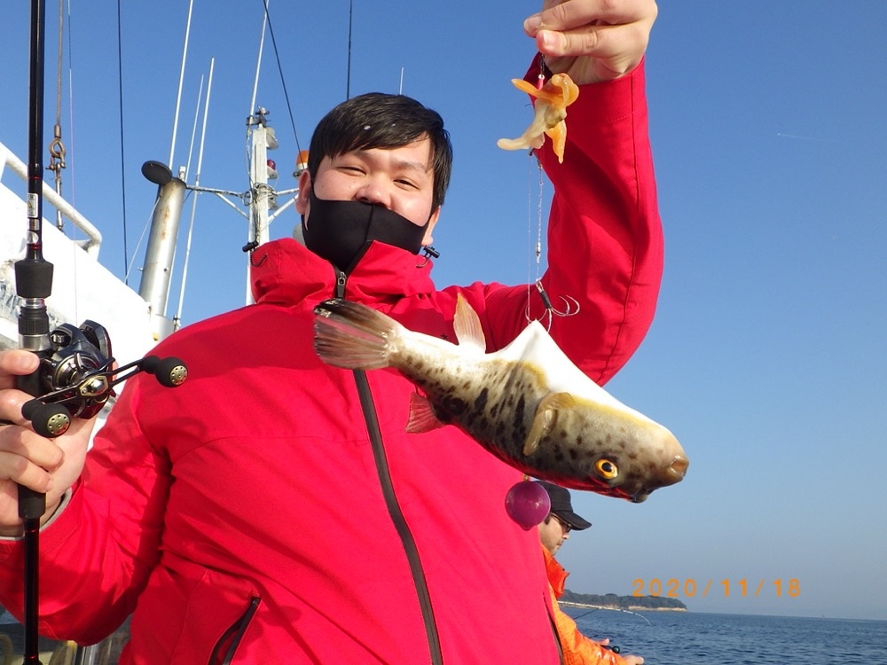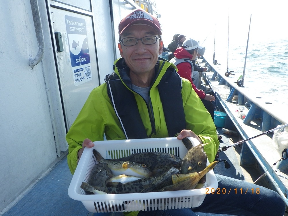 ご覧の通りキロアップも交じりフグ&カワハギ2本だて狙い大成功です!