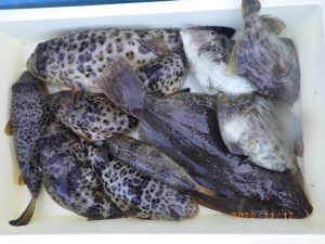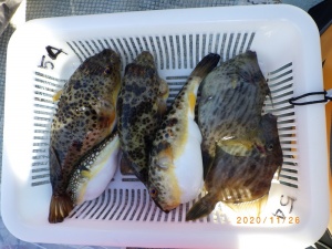 - 釣りものカワハギ、ヒガンフグ、ショウサイフグ