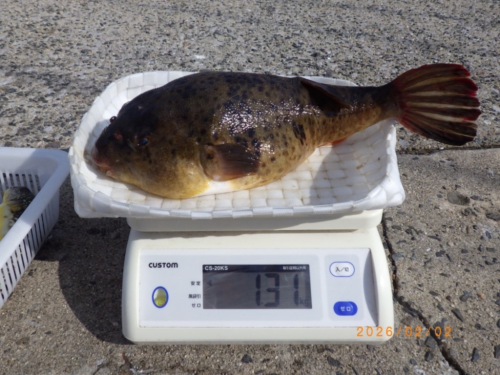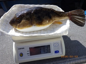 ヒガンフグも混じり、最大は1.3㎏、次点1.2㎏と重量感バッチリの良型も登場。