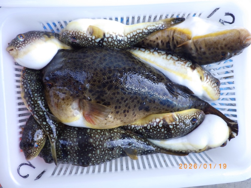 コモンフグはサイズ様々でしたが、良型ヒガンフグ交じりで内容のある一日となりました。