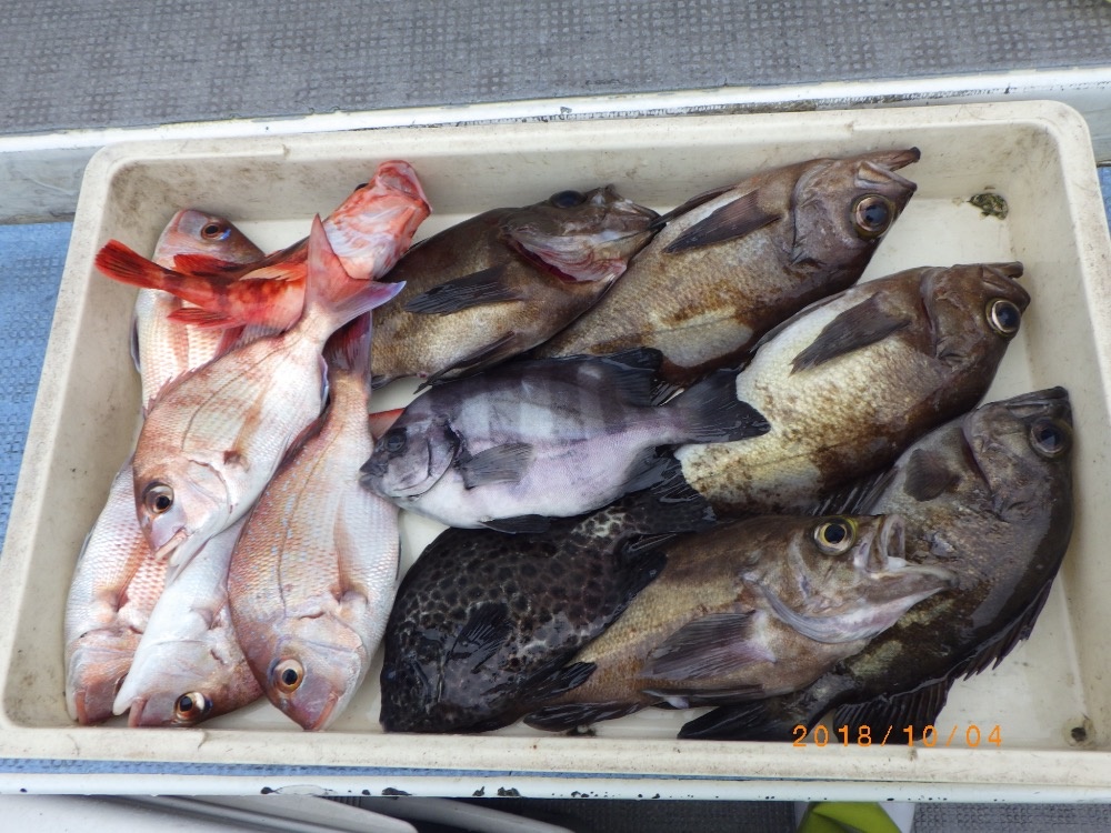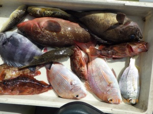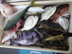 - 釣りものサンバソウ、イシガキダイ、ハマチ、小鯛、コチ、メバル、カサゴ、カワハギ、ウマズラ、フグ等