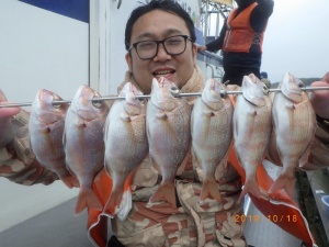 - 場所伊良湖沖、師崎沖 水深10〜30m、胴突き3本針、オモリ60号