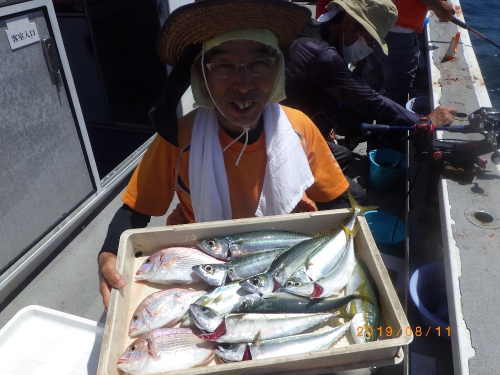- 釣りものイサキ、ツバス、チダイ、サバ、マアジ、シマアジ、カワハギ、カンパチ等