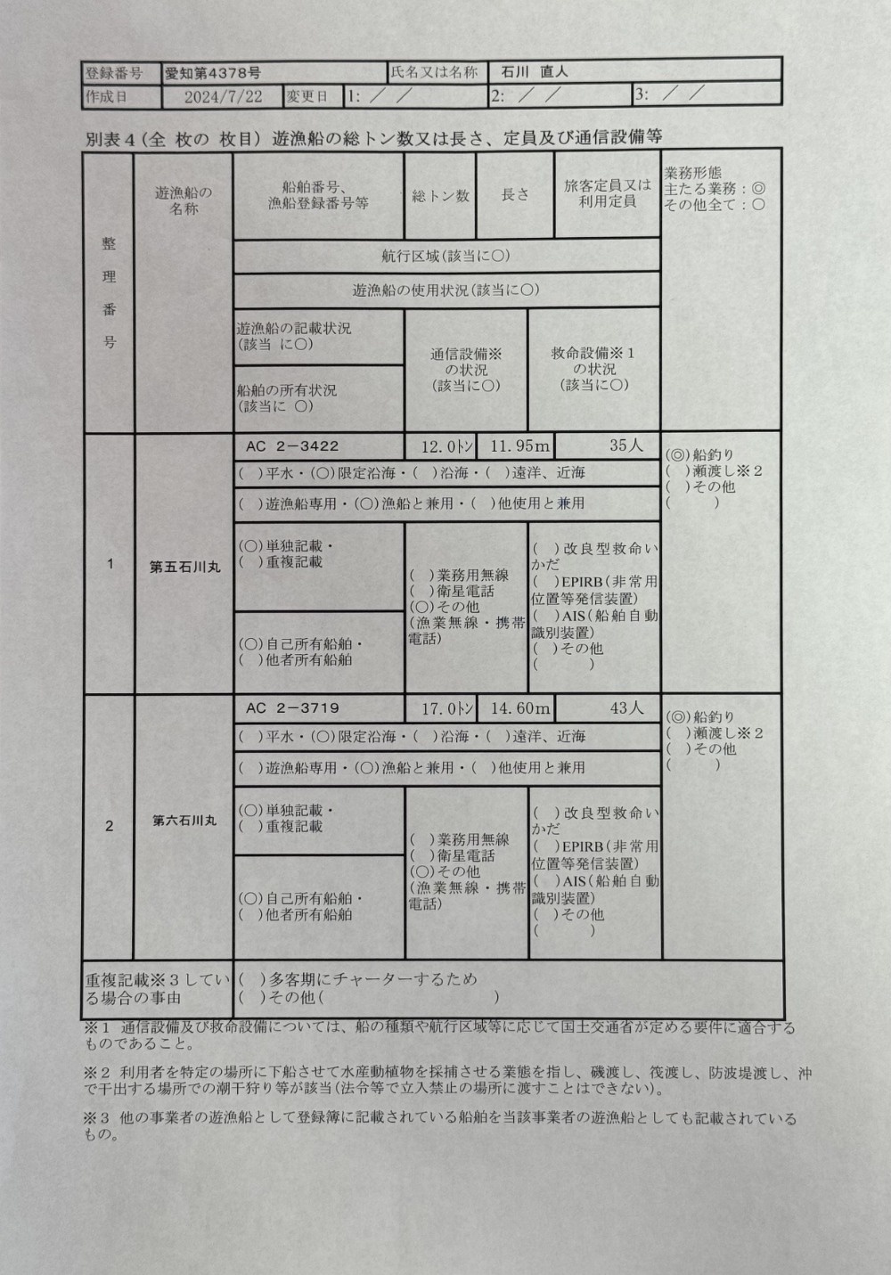 明日以降の出船予定
